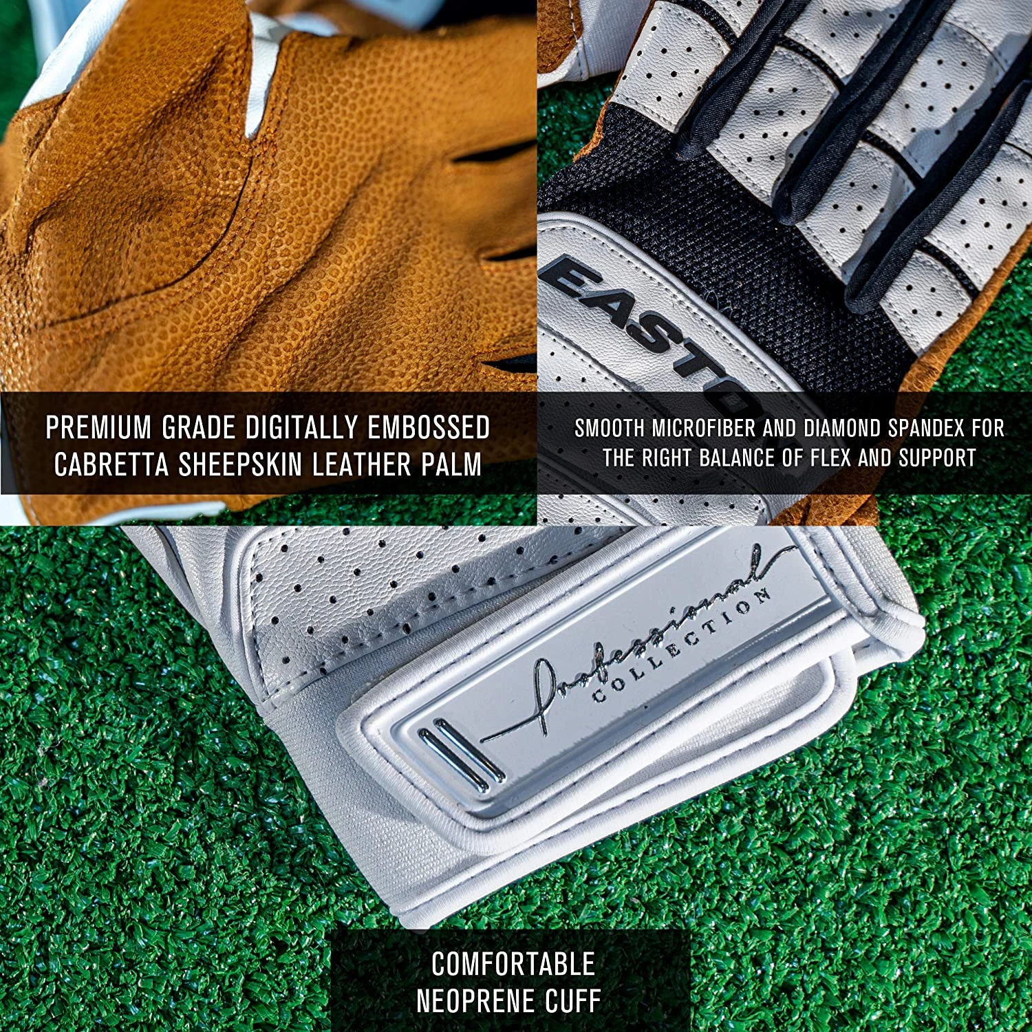 Easton’s all-new Professional Collection batting gloves are the same on-field model worn by Ramon Laureano. These pro batting gloves are built with a premium grade digitally embossed Cabretta sheepskin leather palm and a smooth microfiber and Diamond spandex back-of-hand for the right balance of flex and support. Designed with a comfortable neoprene cuff and a satin woven label for player personalization, and finished off with direct molded Easton and chrome script Professional Collection logos. Easton’s new top-of-the-line batting glove is built to the same specifications of Easton Pros, now available to you.