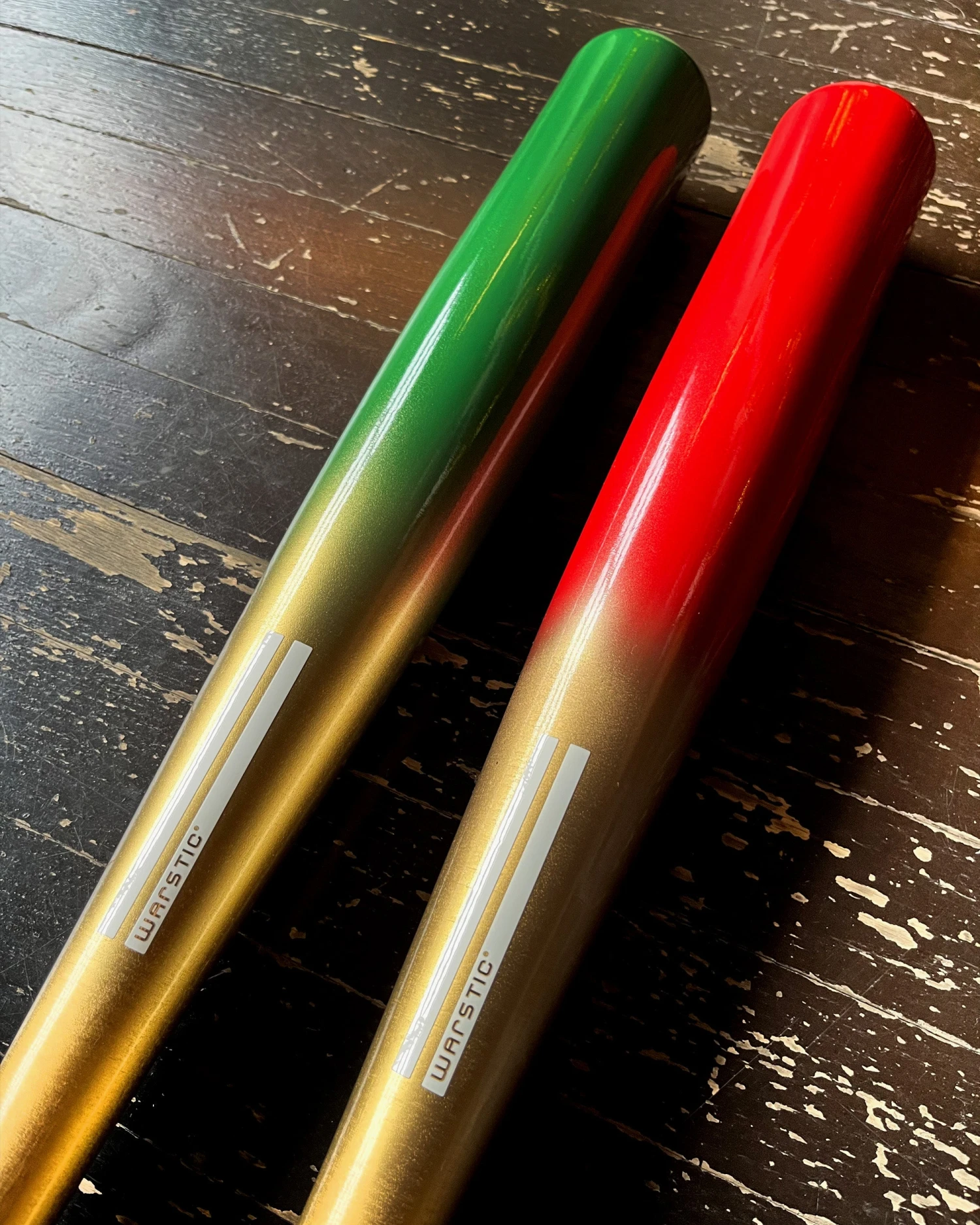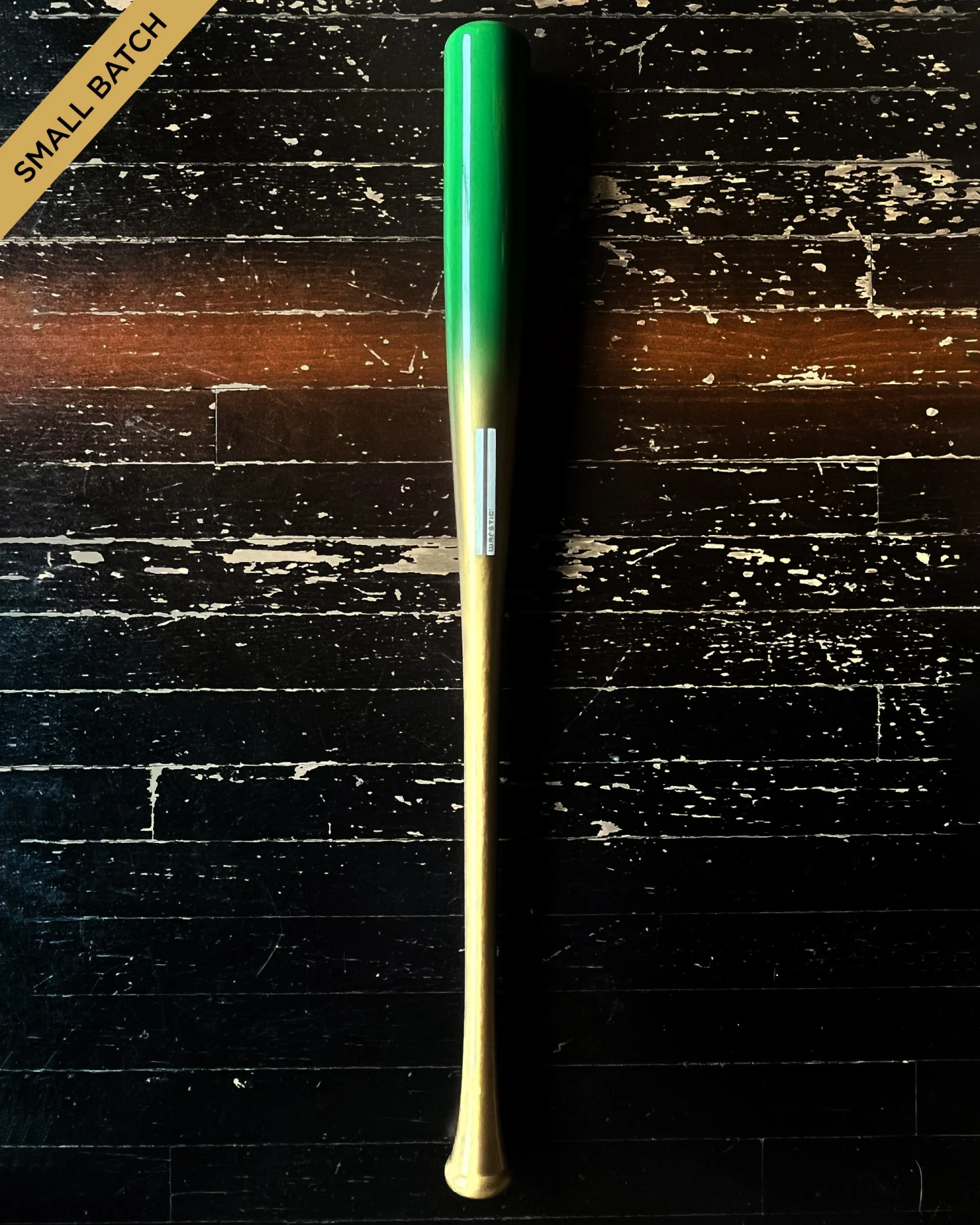 This Small Batch Evergreen WS271 Wood Bat shines with a true green barrel, metallic gold fade down the handle and is equipped with a candy coated high shine finish. Made with Ink Dot grade wood this bat may shine like a glass ornament but has the strength of the same wood our pros use. Order before 2pm 12/21 and select overnight shipping to receive in time for Christmas!