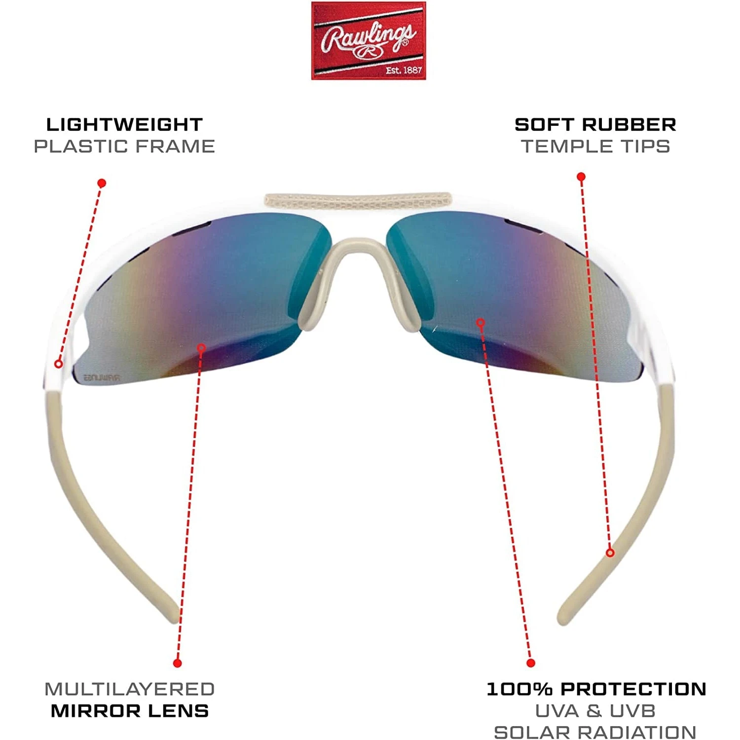 - ️FEATURES YOU DON’T WANT TO MISS. These Rawlings Baseball Sunglasses have a semi-rimless design that is perfect for on and off field. It is multi-purpose!