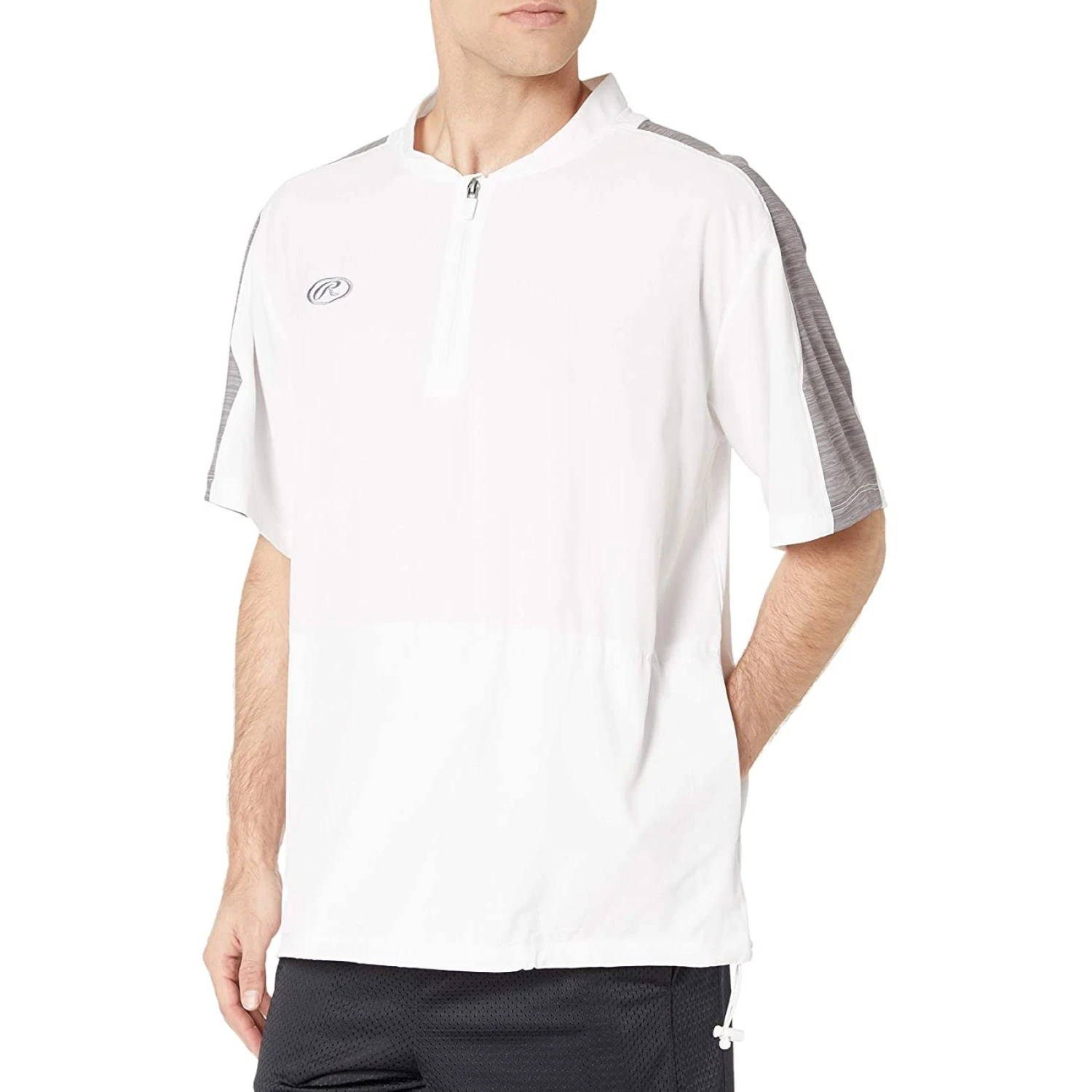 The Rawlings Launch Short Sleeve Men’s Cage Batting Practice Jacket is great for players warming up or parents in the stands. Look professional and sporty with this design.