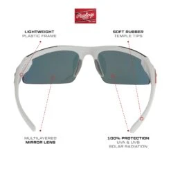 RAWLINGS RY134 Youth Baseball Shielded Sunglasses Lightweight Sports Youth Sport (White/Gray)