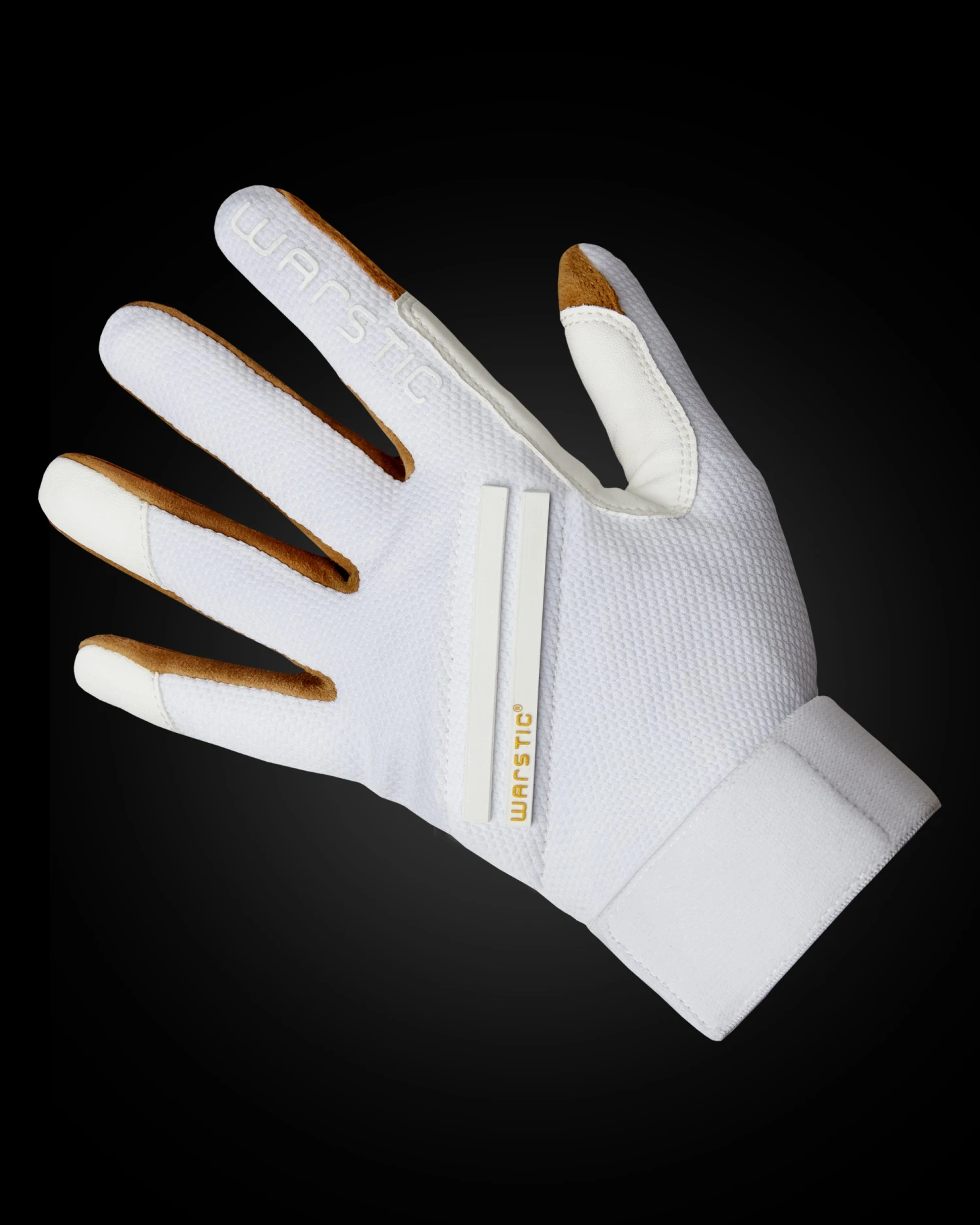 Available in both Adult and Youth sizes, “Whiteout” Warstic® Workman3 Batting Gloves are the most durable, tough, weather resistant, war tested high performance batting gloves on the market. With the Workman3, we took our industry leading wrist support to the next level, with a wide strap that wraps completely around your wrist for even more support. The palm side is modeled after traditional American ranch work gloves while the outside provides that clean timeless Warstic® aesthetic you know we bring. Whether you’re grinding out hundreds of swings in the cage day after day, using them for your gamers, or both, these gloves are becoming recognized in the baseball world because they simply look great, feel great, and last. Battle indeed.